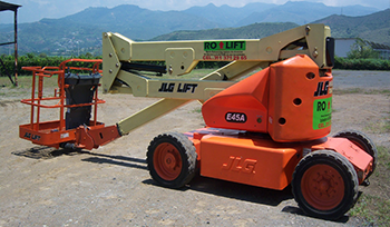 Operador de manlift (Elevador de Personal). Entrenado bajo las recomendaciones de la Norma ANSI SIA A92.2.